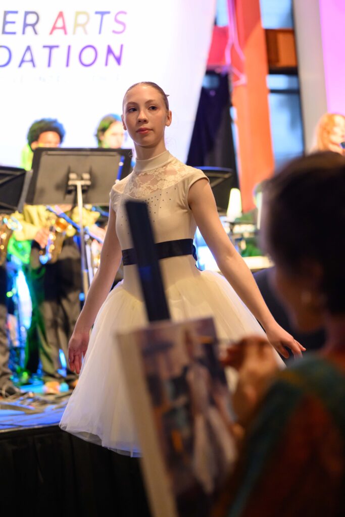 Guests enjoyed a thoughtfully curated menu, inspiring performances, delightful surprises, and an artfully elegant atmosphere. A robust silent auction and fun live auction included a variety of vacations, weekend getaways, original artwork, dining experiences, sports packages, and more. After dinner, guests kicked up their heels on the dance floor to the sounds of “The Last Thursday Band”, featuring Chet Brown.